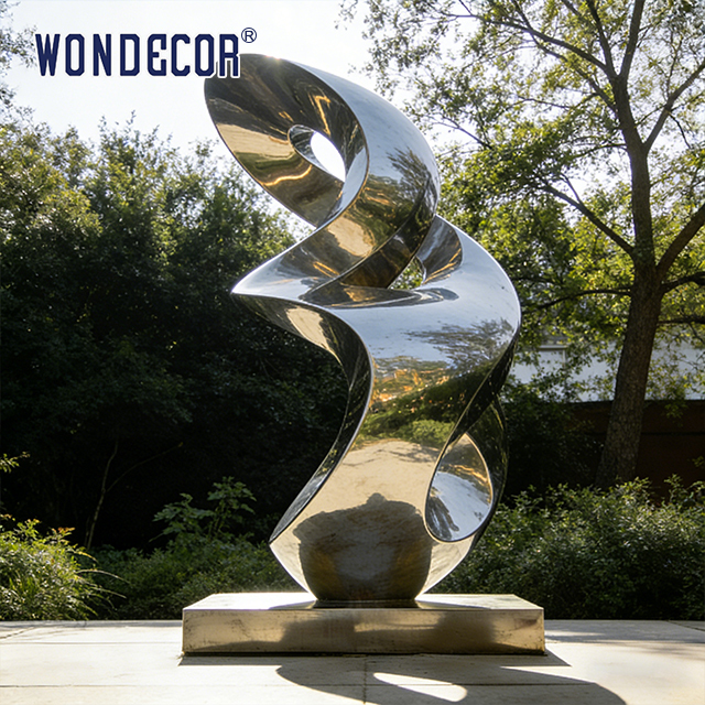 Tác phẩm điêu khắc bằng thép không gỉ "Infinite Essence" này, với hình dạng biểu tượng vô cực mềm mại, là một tác phẩm lắp đặt nghệ thuật lý tưởng cho cảnh quan ngoài trời và không gian thương mại. Được chế tác từ thép không gỉ hoàn thiện gương đánh bóng cao, nó không chỉ phản chiếu cây xanh xung quanh và ánh sáng bầu trời dưới ánh sáng tự nhiên để tạo ra hiệu ứng ánh sáng và bóng tối động, thay đổi theo môi trường, mà còn có khả năng chống chịu thời tiết vượt trội — chống ăn mòn và chống tia UV, nó duy trì vẻ ngoài sáng bóng, lộng lẫy ngoài trời trong nhiều thập kỷ với ít bảo trì. Các đường nét tối giản, uyển chuyển của nó hài hòa hoàn hảo với môi trường sinh thái tự nhiên, đóng vai trò là điểm nhấn thị giác nổi bật đồng thời truyền tải ý nghĩa nghệ thuật về sự vô tận, chu kỳ và sức sống.